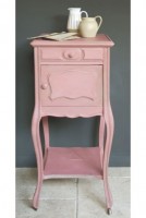 graphiteの壁を背景にscandinavian pinkでペイントしたエレガントなフレンチベッドサイドテーブルです。