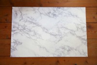 もう1つの大理石風と比べ、柄の黒い部分が濃く、サイズが大きくなっています。板に貼ったシートとは別の使い方ができます。まるめて、持ち運びができますので、このシートの上で撮影するからどこでも撮影可能です。