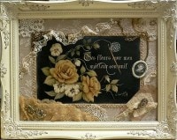 河崎香さんがこちらの作品で廃盤になりましたローズの柄を使用しています。 こうして使用すると作品が一段と素敵を増しますよ。今回は小花のみです。 KK-A1